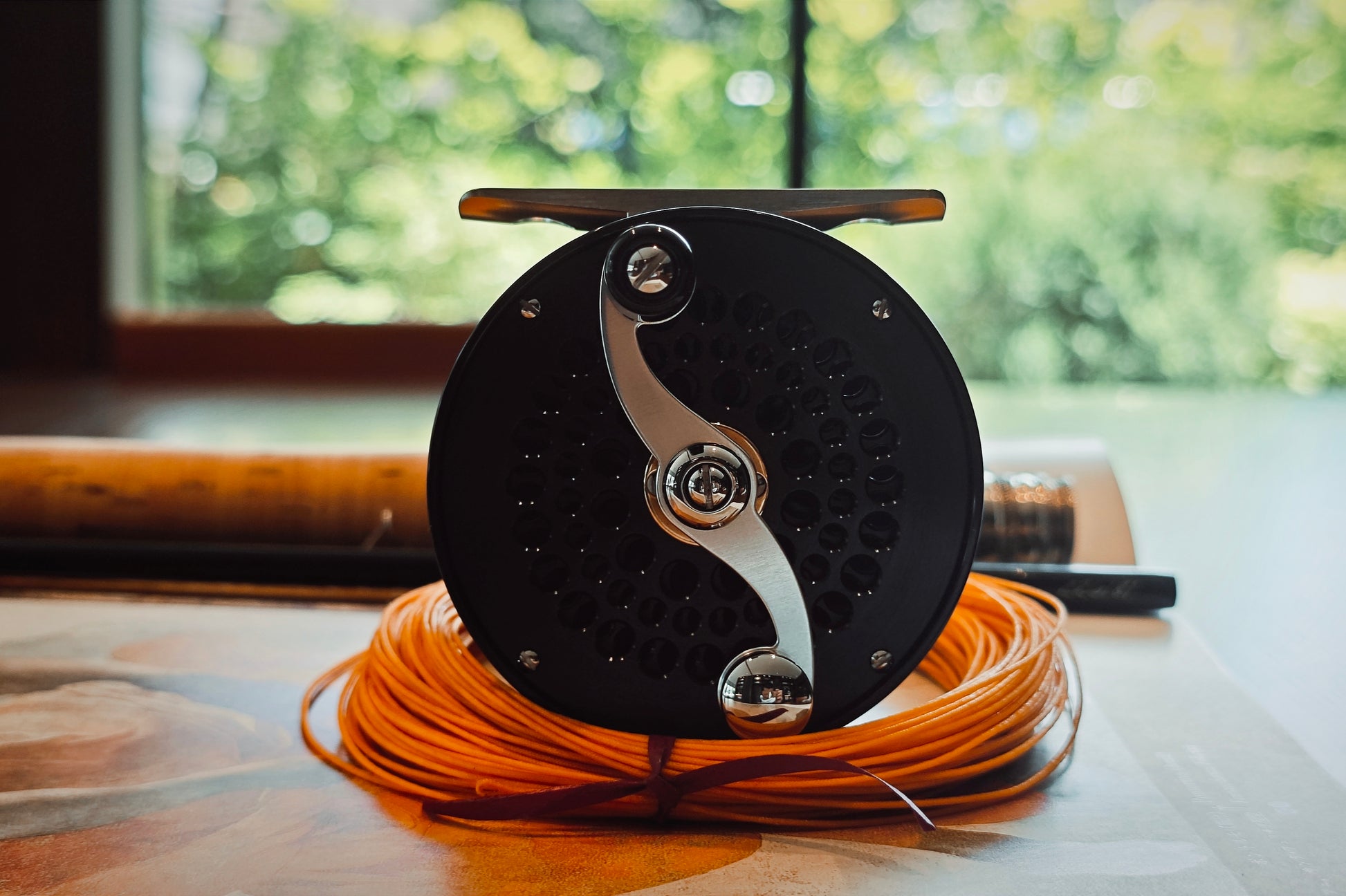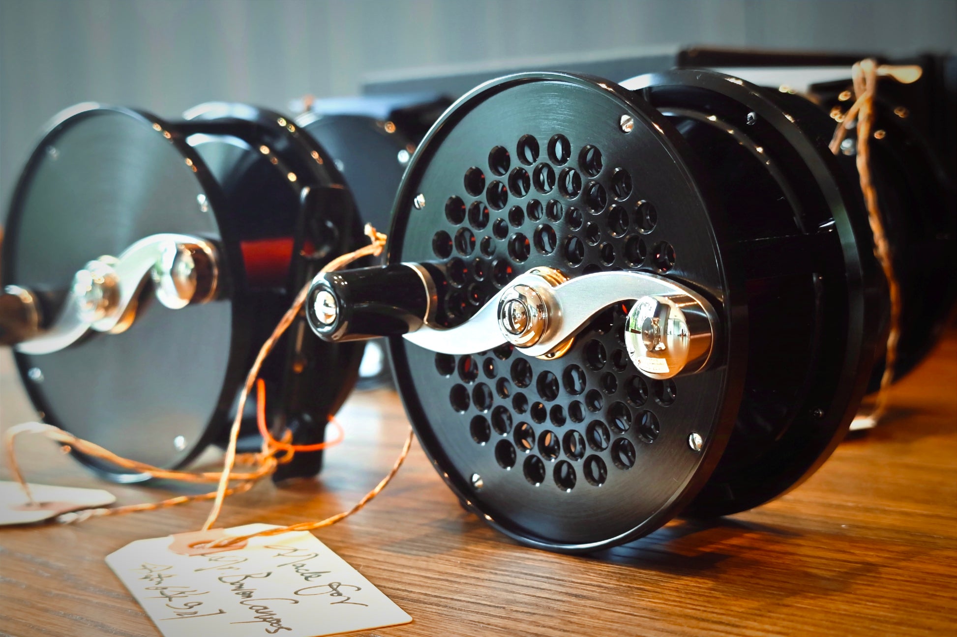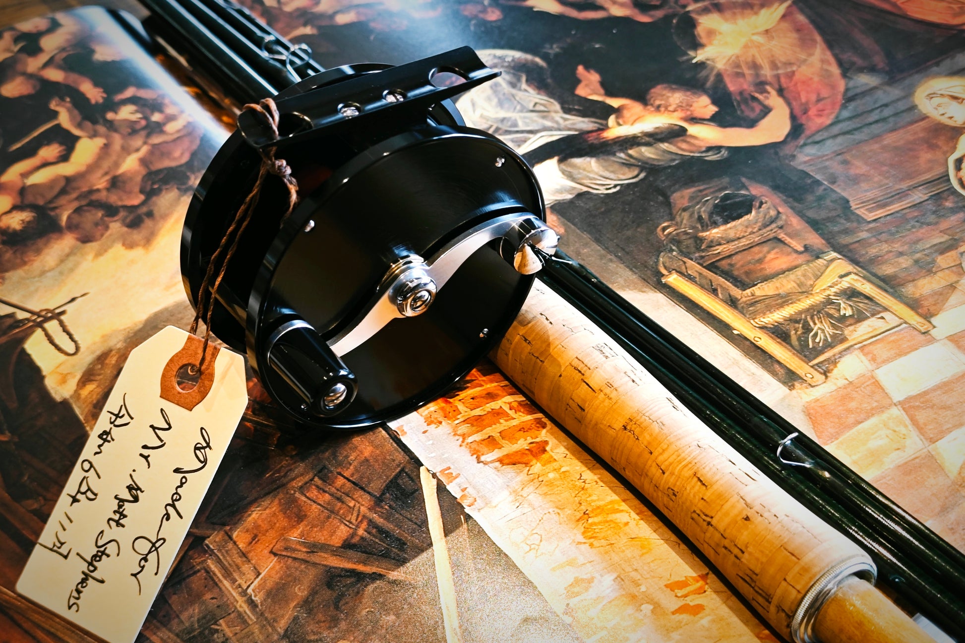 *クラシックなブラックバックプレートに手作業で磨き上げられた旋盤ライン、黒のフレーム、黒のスプールが、黑の輪足(ゴールドも利用可能)